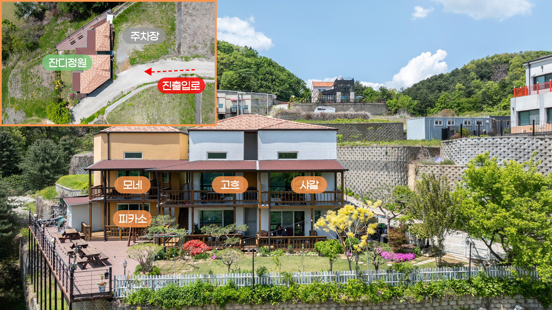 가평 아트 애견동반 펜션 배치도 안내입니다.
